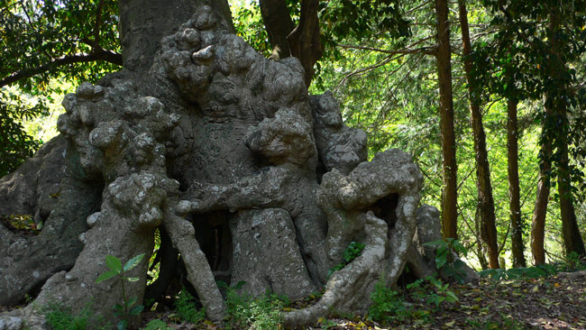 馬頭観音付近に生えてた木。一本の木の幹なんだけど、ライオンの子が親の足にしがみついている様に見えない?
