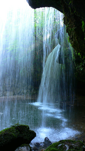 裏見の滝ともいい、滝の後ろに入れたりする。水飛沫が凄く、レンズに付着してうまく写真が撮れない・・・