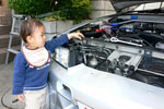 ボンネットオープナーの交換作業をしている時に、横で振り回してくれました。