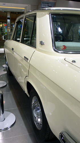 昭和38年(1963)9月に発売された2代目ブルーバード410型は、軽量・高剛性のモノコックボディーとイタリア・ピニンファリーナ社デザインが特徴。また、東アフリカ・サファリラリーなどで定評を得ていた高速性能、耐久性と豊富なボディーカラーバリエーション人気を博した。この車は新型エンジンJ型・SUツインキャブを装着したスポーツグレードのSS(スポーツ・セダン)。
