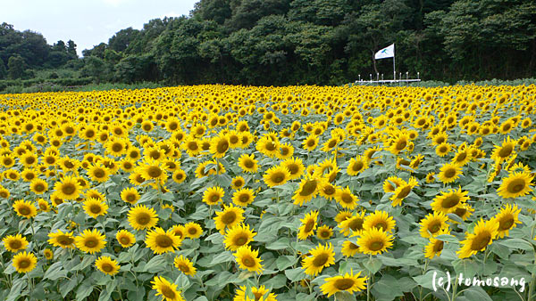 春には菜の花(「宮地嶽神社:寒緋桜」参照)、秋にはコスモス、そして今年から新企画(?)ヒマワリの絨毯も始めたようです。