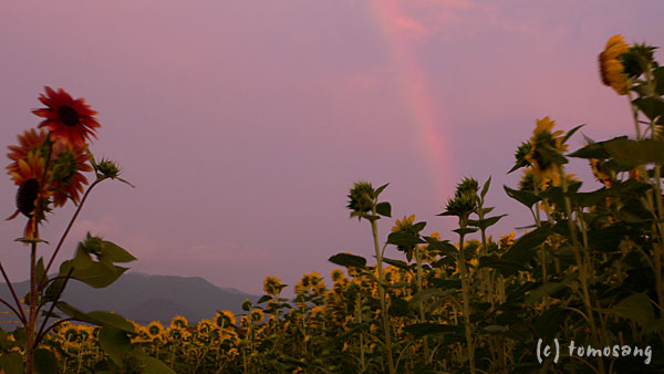 一瞬(5秒位)雨が降った。そのせいか虹が出現。虹を強調させるためにPLフィルター使ったから、SSが落ちて風もあったので被写体ぶれ。
