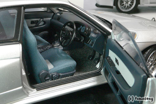 内装に関しては京商のほうが再現性は高いですけど、外観の細かい部分はオートアートのほうがよく出来ており、眺め甲斐があります。京商のR32標準車は「京商 1/18スケール R32 GT-R」に掲載してあります。前のブログ時に掲載したものなんで写真が小さいですけど。