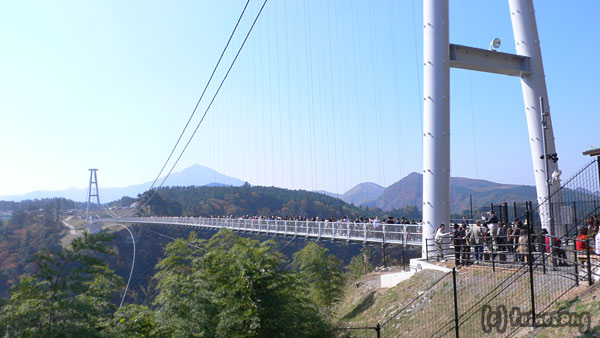 横から見てるともの凄く橋が揺れて、ワイヤーがブルブル震えてる。ここでまた「ワイヤーが切れて橋が”ブチッ!”と落ちたら・・・」