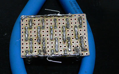 あまり裏は見せたくないですけど・・・このようにカットしたLEDの足を両端から出して半田付。端子代わりにしました。