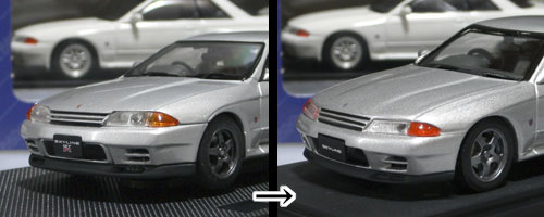 グリル:旧モデルは黒塗装により再現していたフィンが、きちんと溝の入ったグリルになった。