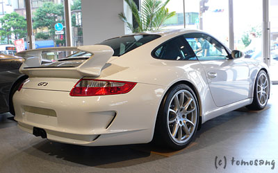 これ系の車を扱うディーラーショールームは庶民には入りづらい。しかしここは警備員が一人がいるだけなので気軽に入ることが出来る。柵があって車の真横まで近付くことは出来ませんけど。しかも反対側から見たければ外に出てガラス越し・・・