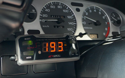私の32にはアペックスのレブスピードメーターが付いていますので、これを外して付け替えます。当初スピードリミッターをカットするのが目的で購入しましたけど、その後ROM交換してリミッターなんてものが無くなってるので必要ありません。180以上の速度表示は今回のメーターで確認出来るわけだし。
