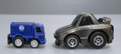 どれ位ミニミニか、通常のチョロQと比較。