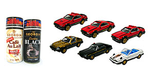 11月19日から全国のコンビニエンスストアにてジョージア 新「エンブレムブラック」と新「コクのあるカフェオレ」の2製品に「西部警察オリジナルマシンコレクション」がオマケとして。