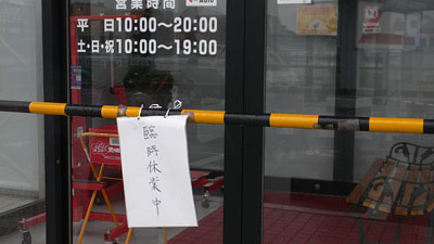 入口の前には「臨時休業中」と書かれた紙が風に吹かれてバタバタと・・・