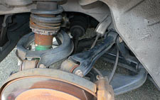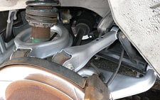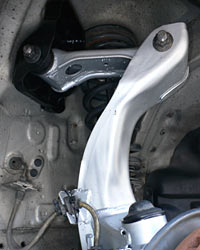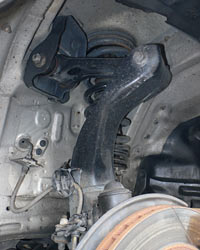 右フロントナックルアームのベアリング部にガタが出ていて、手で揺らすと動いていたと報告を受けています。左も動きはしないもののガタが出始めているとも言われました。段差を超える時に出ていた異音はこれが原因だったのではないかと思います。