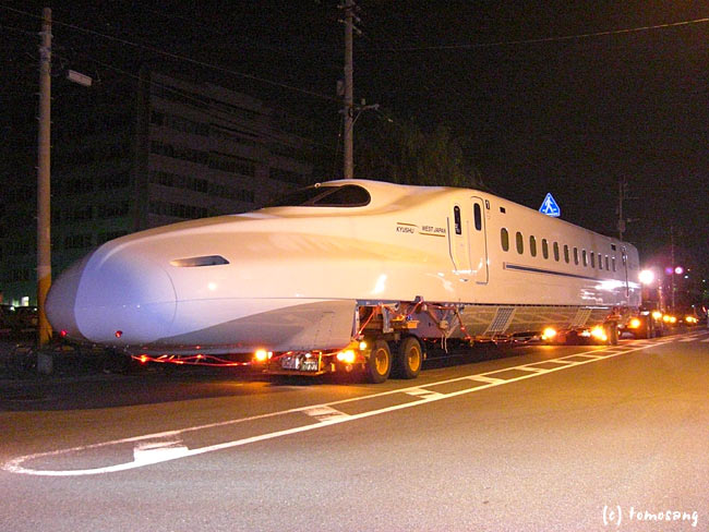 新聞を読んでいると、神戸から船に載せられてやって来た九州新幹線の新型車両が博多港中央埠頭に陸揚げされているとのこと。記事を読むと、3日、4日、5日の未明に陸送を行うとも書いてある。以前N700の陸送も見に行っているのでルートは頭に入っています。カメラ機材一式を揃えて出撃!