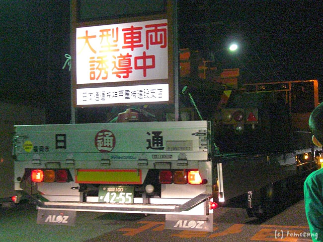午前2時、本日2両目の搬送車両を載せたトレーラーがバックしてきました。