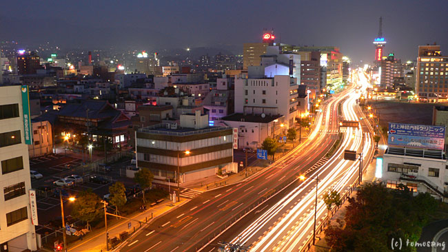 店内物色しても何も無いので屋上駐車場に出て国道10号とタワーを撮影してみた。