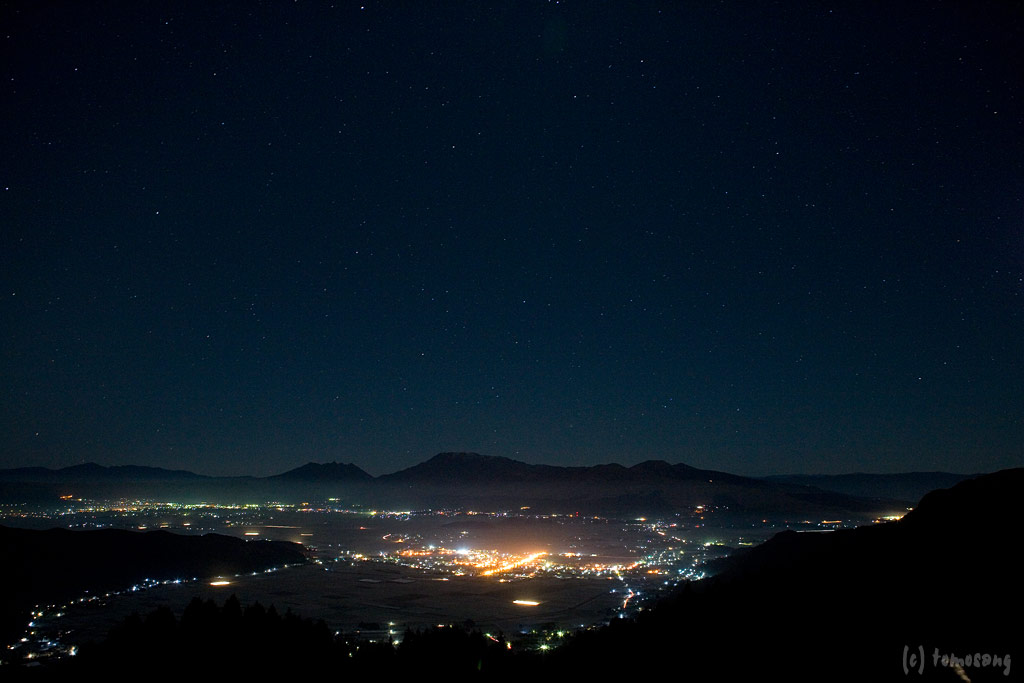 ついでに阿蘇五岳方面も撮影してみました。下に見える街明かりが今回バルーンフェスタの行われた内牧です。