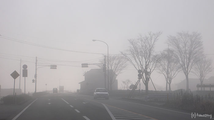 雲海に覆われる内牧を抜ける。