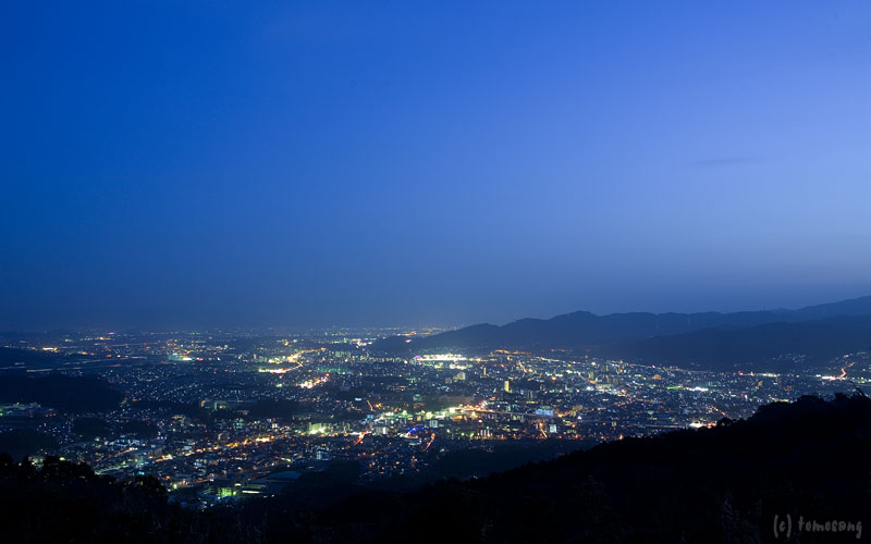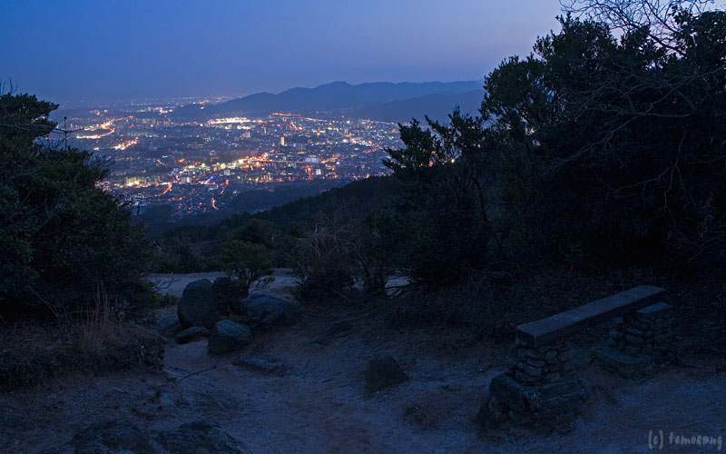 そして焼米ヶ原からは大宰府・筑紫野の街を見下ろす事が出来る。夜景も綺麗なのではなかろうかと、暗くなるのを待ってみた。