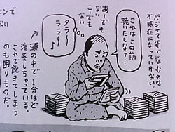 暇だから何か聴こうとラックの前に立つと悩む悩む・・・・。イラストの通り、聴き込んでいるからCDを手に取るだけで音楽が脳内にフラッシュバックして流れてしまう。それで満足してラックに戻す。CDは作品単位なので、パソコンみたいに適当にランダムプレイなんて出来ません。結局ラックの前に何分も立ち続け一枚を選べない。