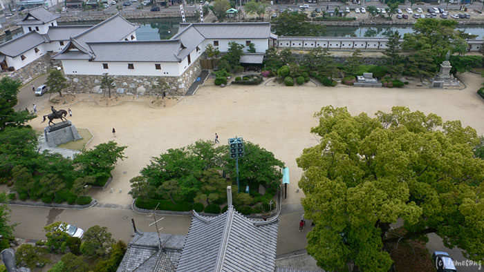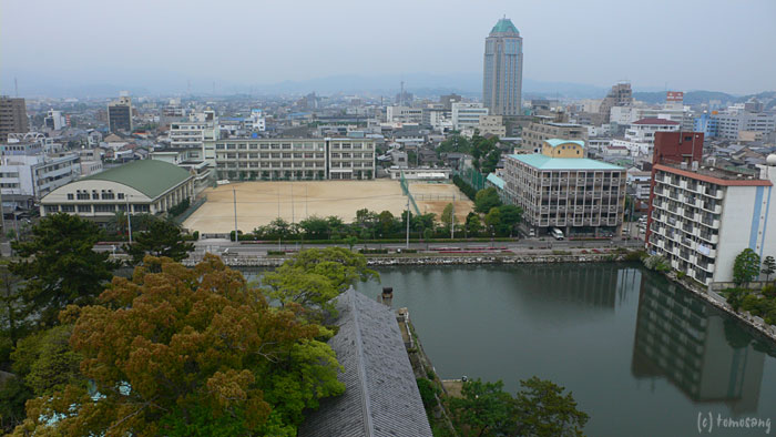 靄ってるというか、霞んでいるというか。晴れていればしまなみ海道まで見渡せるようですけど、そんなもの見えませんでした。お城そのものに興味というより、天守閣からの眺めを楽しみにして寄ったというのに。