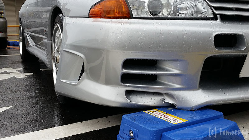 コインパーキングのロック板装置に突っ込み割れてしまったTRIALバンパー【ブルーからゴールドへなったけどブルー】