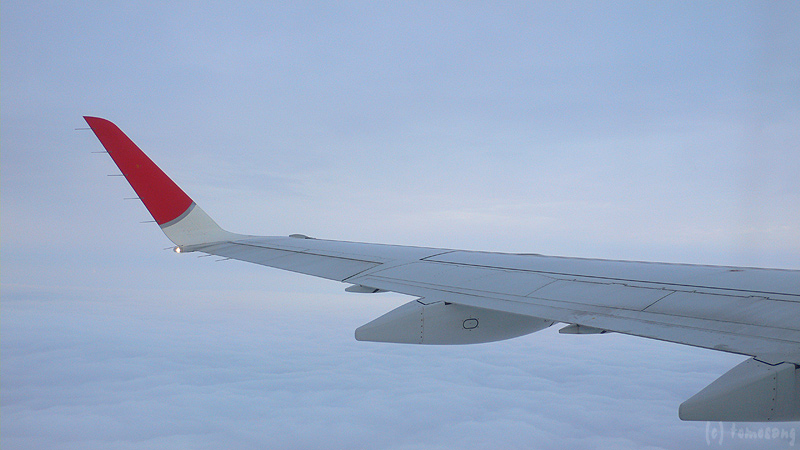 出発日の天気は雨。窓の外はずっと真っ白で、珍しく背もたれに寄りかかりずっと前を見ていた。空の見えないフライトほどつまらない物はない。私は飛行機に速さやサービスなどは求めていない。
