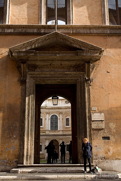 ヴィットリオ・エマヌエーレ二世記念堂からヴェネツィア広場を抜け【Via del Plebiscito / プレビシト通り】へ左折。200m程歩くと左手に