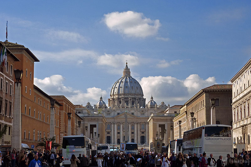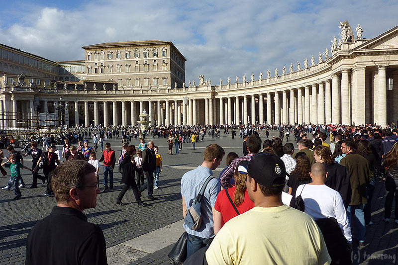 サン・ピエトロ広場にまで来ると、大聖堂に入る人の長い列・・・