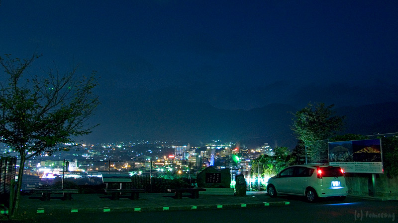 土曜、日曜、祝日とイベント時には湯けむりをライトアップということだが、到着時は点いていなかった。どういう事だと思いながら夜景撮影。