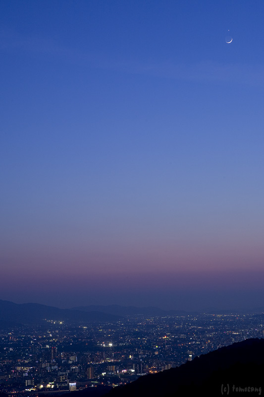 一枚撮影して後ろを振り返ると、三日月が出ていた。そしてその上に輝く宵の明星。