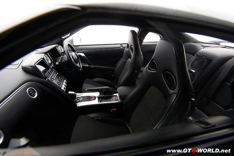 第一弾として発売するファインモデル『8分の1 NISSAN GT-R』は、エクステリアだけでなく、内装も精密に再現した「究極のモデルカー」(同社)。インパネのスイッチ類やシートのステッチなどまで再現されたその出来映えは実車と見紛うばかりだ。