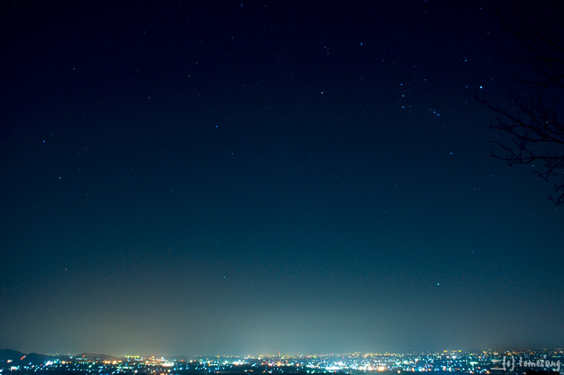 街灯りは夜景としては淋しいのに、星の撮影となるとこの程度でもかなり邪魔みたいだ。しかも黄砂が浮遊している影響か、乱反射して余計に観察し辛い。やはり背振山に移動するべきだった・・・