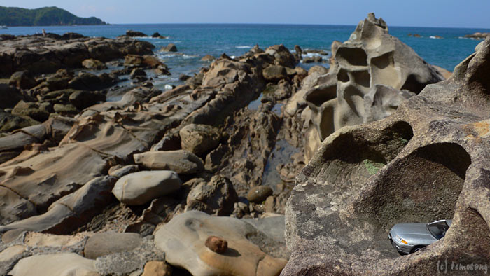 前日に寄り、薄暗い中見物したものの、どうせだからと再度寄ることにした。風と波による奇岩の造形美。土佐清水市竜串「竜串海岸」