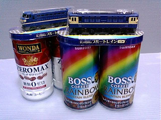 例のコーヒー2缶に一個のオマケシリーズ、今回は「愛しの深夜特急 ブルートレイン」ということでブルートレインを引っ張ていた機関車がついています。