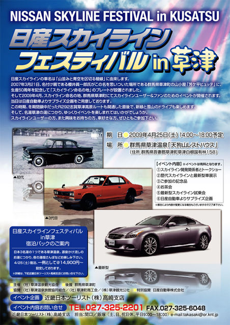 そして2009年4月、スカイライン命名の地、群馬県草津町にてスカイラインユーザー&ファンのためのイベントが開催されます。