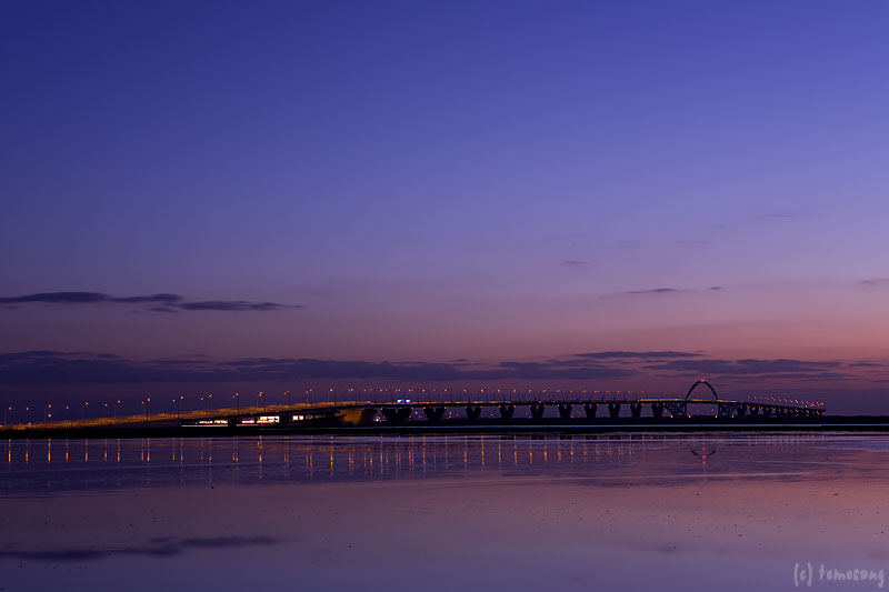 暁の中に浮かび上がる新北九州空港連絡橋