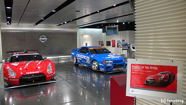 GTカーはなぜかフロントまで真っ黒のフルスモークで内装が全く見えない。確認したらエンジンとか載ってない外側だけの展示用。「カルソニックは一応レースにも使用はしましたよ!」とミスフェアレディーが必死に説明してました(笑)