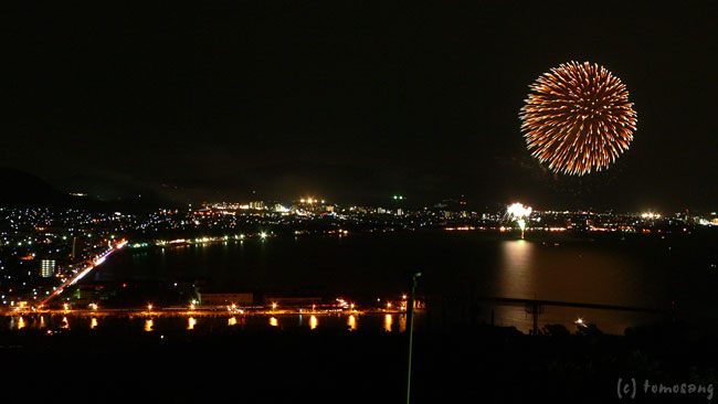 先日NHKで中継された大濠花火大会をテレビで見てたんだけど、非常にさびしくなった。やはり花火は生で見ないとね。ということで見て帰ることに。