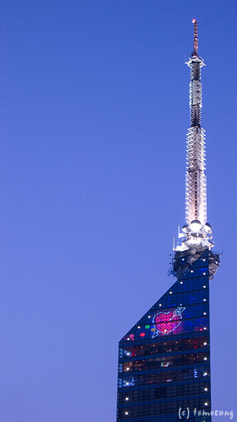 早めに現地に到着、他のアングルで撮影出来ないかとうろついてみましたけど、背の高い建物に囲まれているし、ハートは片側にしか点灯しないしで結局毎年同じ様なアングル。