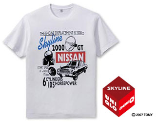 「Win BNR32 Blog」読んで気付きましたけど、タカラトミー×日産自動車×ユニクロの3社によるコラボ企画「スカイラインTシャツ」が、今日(2日)明日(3日)オンラインストアのみ期間限定価格にプライスダウンされています。
