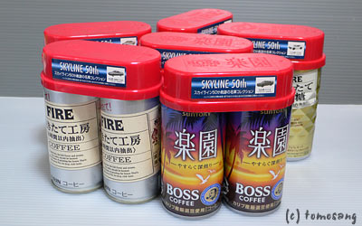 スカイラインファンなら既に知ってる人も多いでしょう。以前にローソンがやってたコーヒー2本に一個ミニカーがオマケについてくるあれ、今度はスカイラインです。