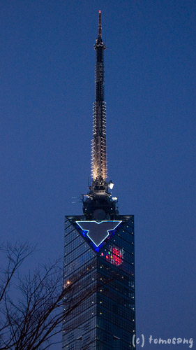 2月1日よりホワイトデーの3月14日まで、タワー上部にハートのイルミネーション。タワー前広場の樹木にはブルーイルミネーション(クリスマスの使い回し?(笑)が点灯されています。
