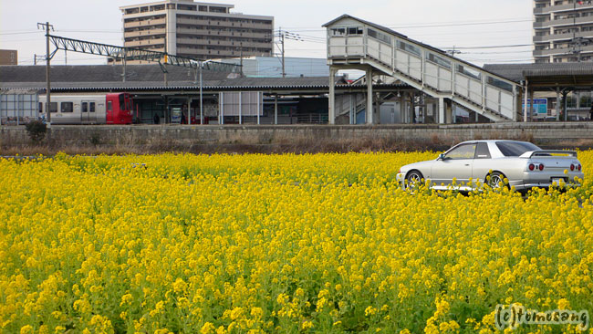 近所の駅(JR福間駅)裏の菜の花が満開だったので撮影してみた。再開発でここもぶっ壊される予定なはず。