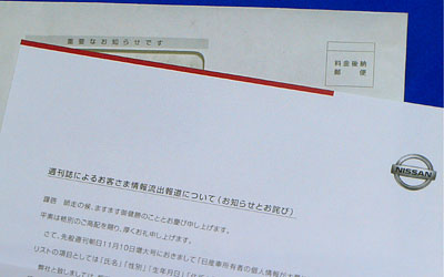 メディア報道もされた個人情報流出の件についての詫び状でした。