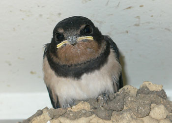 朝になると、他の4匹は親鳥と一緒に外を飛び回るのだが、今日もこの一匹だけは巣に残っている。