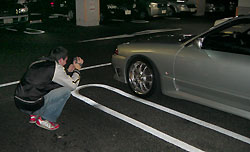 ここで、タイヤ等についての日本の保安基準を説明するのに、悪戦苦闘するtomosangがいるわけだ。ボディーラインからはみ出ないようにしないといけない、と説明するのに20分位かけたかな?結局頼るのはジェスチャーだったりする。