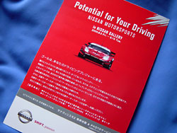 久々に出かけてみようかなと思う内容のDMハガキが来ました。8月5日~16日「Potential for Your Driving 日産モータースポーツ」