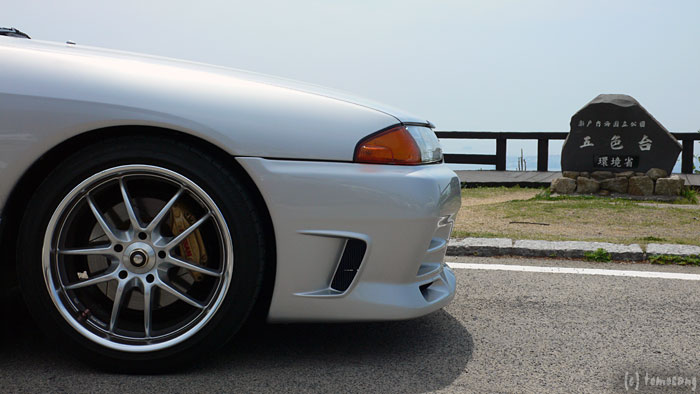 子供会のレクレーションの様なものが行われていて、展望所駐車場にはマイクロバスや車が沢山とまっていました。空いてるスペースがほとんど無く、残念ながらクラウンが一緒に写り込んでしまいました。32をもう少し右側に動かすと、今度は右側に止まっている車が入り込み、32の車体と被るのでしょうがなくこの位置で。