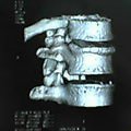 診断としては第一腰椎圧迫骨折(その他打撲等も有)。骨折というから骨が寸断されてるのかと思えば、画像の様に角が潰されてる状態。大人しくしてれば後遺症なく治るそう。ただ「背筋を伸ばしておかないと曲がった状態で骨が固まるよ」と脅し(!?)を受け、明日コルセットを作ることに。入院してもう10日、もっと早い時期に作るべきだったのでは?