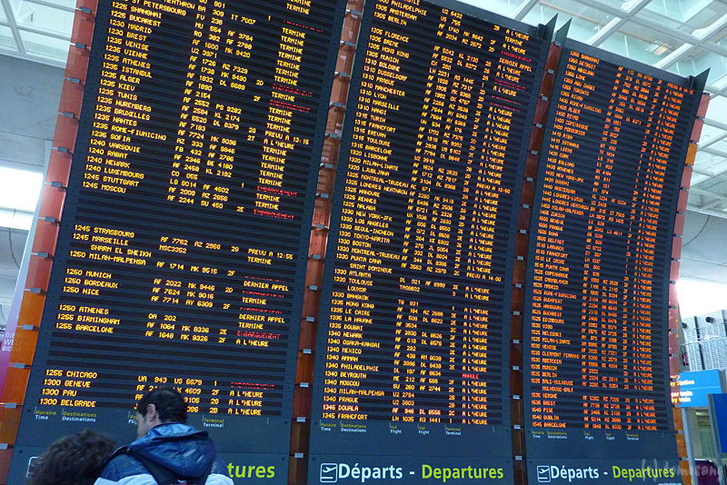 サン・ミシェル駅からRER B線を利用してシャルル・ド・ゴール空港まで30分ちょっと。空港にはターミナル1とターミナル2の二駅が存在する。イージージェットはターミナル2なので終点まで乗る。